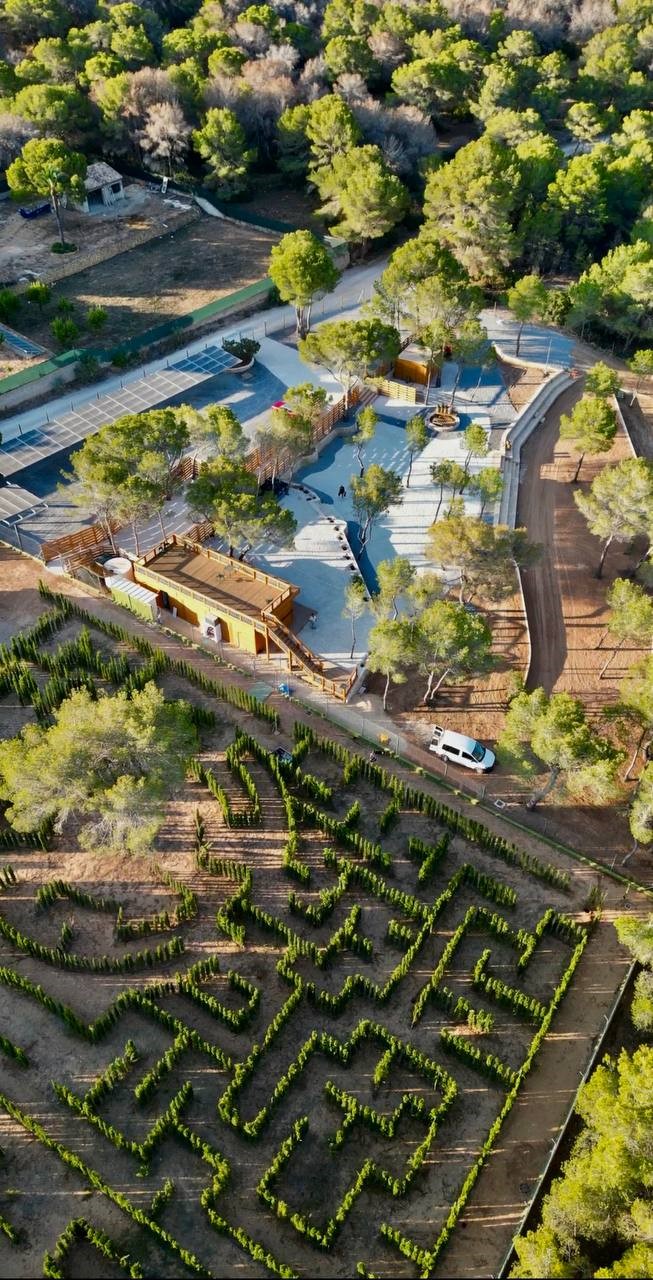 Cuenta con 5.000 m² de Ciprés Mediterráneo dedicados al laberinto y otros 5.000 m² de zona de ocio, con jardines, espacios abiertos y terraza exterior, creando un entorno natural privilegiado donde se combinan naturaleza, diversión y bienestar.